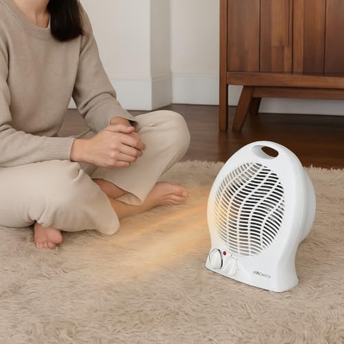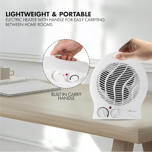 - Portable and lightweight design : compact electric fan heater with integrated carry handle and rubber feet for easy movement between rooms, ideal for home, office, and indoor use