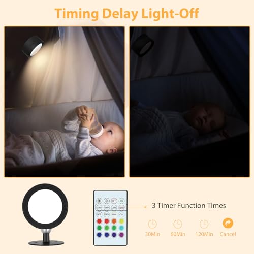 - 360° Free Rotatable Magnetic Ball: This magnetic wall lamp a stronger magnet and optimized the structure of the wall lights to truly achieve 360° free rotation and stable without falling off, so the lamp body can rotate at any angle. You can take it off the wall in 1 second without tools, and it is easy to remove the wireless wall light from the magnet mount for charging or as a portable light use it in various places.