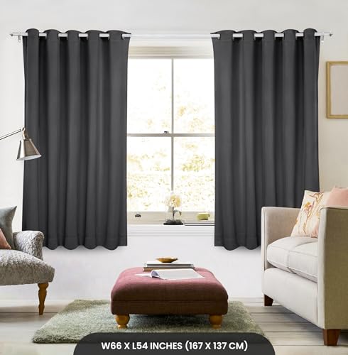 - Eyelet Curtains: Ready-made thermal curtains set of 2 each measuring 167 cm wide and 137 cm long. 10 anti-rust grommets per panel with 4 cm inner diameter that fit and slide easily with standard blackout curtain rods.