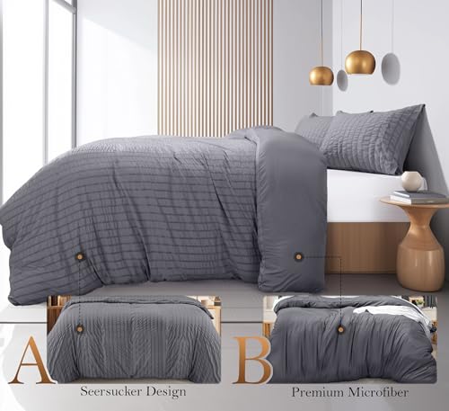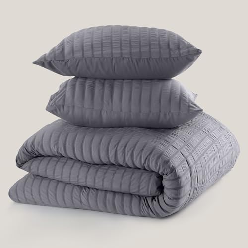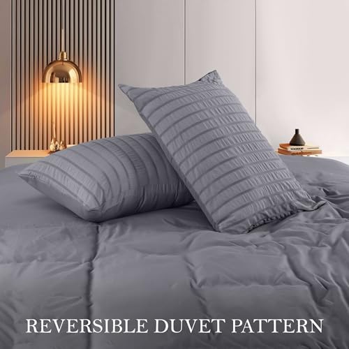 - Stylish Seersucker Design – The puckered texture of the seersucker duvet cover set adds depth and charm to the bed. The stripe design is elegant and modern.