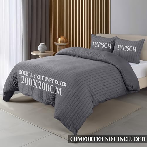 - Seersucker Duvet Cover Set of 3 – Transform the bedroom into a serene sanctuary with our double duvet cover (200×200 cm) with matching envelope closure pillowcases (50x75cm); comforter sold separately.