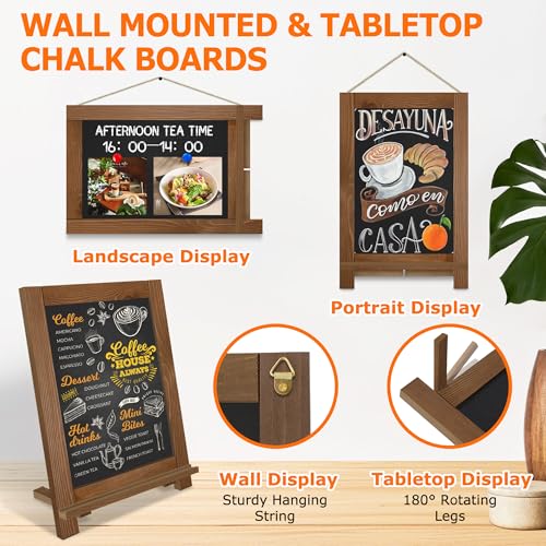 - WALL MOUNTED & TABLETOP CHALKBOARDS: VAIIGO small chalk board easily switch between tabletop display blackboard (with Rotating Legs) and wall mounting blackboards (with a hanging rope).