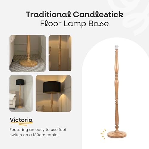 - FLOOR LAMPS – A freestanding, tall, wooden floor lamp base. Featuring an easy to use foot switch on a 180cm cable.