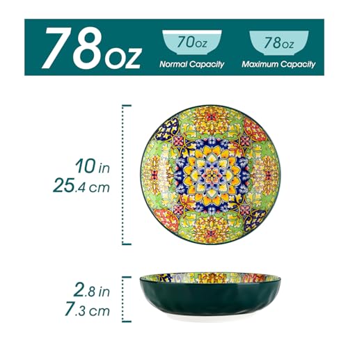 - 【Practical and versatile】 As a multi-purpose bowl, serving bowl, salad bowl and mixing bowl, this multifunctional large bowls consists of 2 bowls diameter 25.4 cm, 2340 ml to the brim with different patterns. The large bowls suitable for salad, soup, cereal, dessert and other food. Stackable and space-saving.