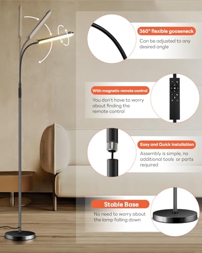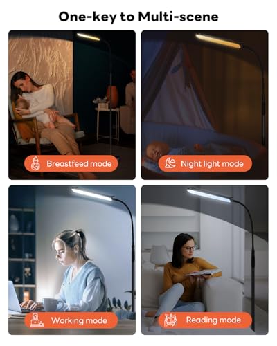 - 4 SCENE MODES AND MEMORY FUNCTION: The free standing lamp remote control has 4 scene mode buttons, which allows you to quickly match the scene to get the right light, perfect for reading, working, entertaining, breastfeeding, resting, knitting. This LED floor lamp has a memory function to ensure you remember your choices the next time you switch it on, more convenient and quicker.