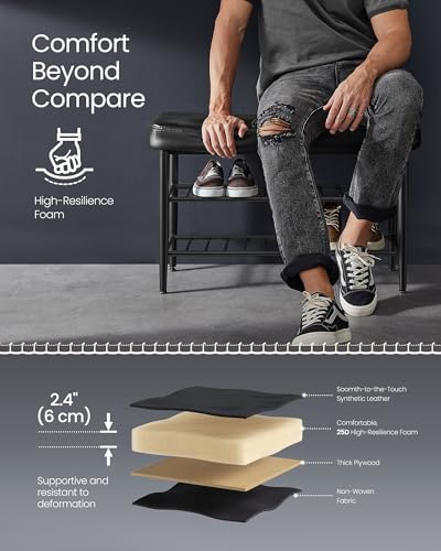 - [Comfort at Every Sit] Glide your hand over the smooth cover, then sink into the supportive 6 cm thick, 25D high-resilience foam, designed to resist deformation. This shoe bench provides a comfortable seat that endures, standing the test of time