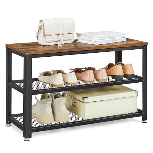 - Welcome home: Don't let an empty and dull entrance await you when you get home. Add this shoe bench with warm rustic brown wood surface and black metal frame. Your entrance will have a different taste