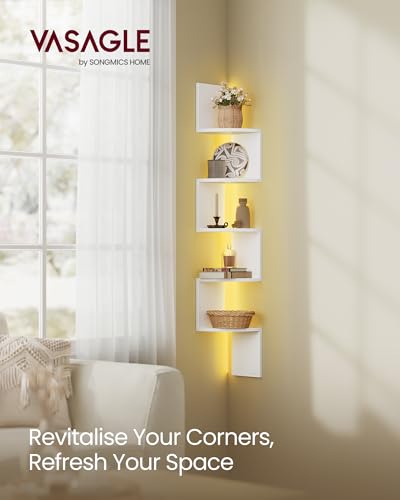 - Store & Showcase in Style: The 5-tier floating corner shelf offers ample room to store and display your daily items, while its zigzag design enhances the visual appeal of your home