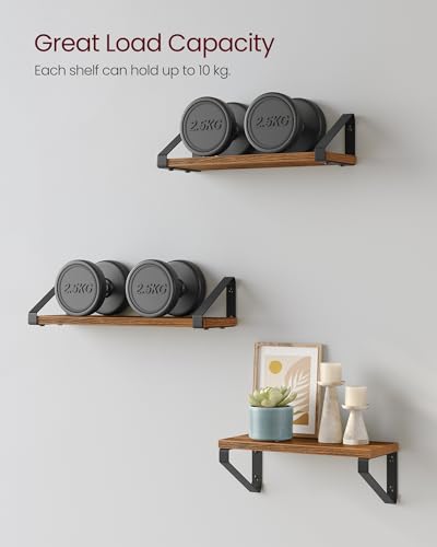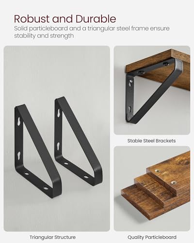 - Sturdy and Durable: Quality particleboard supported by stable triangular steel brackets make 3 wall-mounted shelves that are strong, durable, and able to hold up to 10 kg each