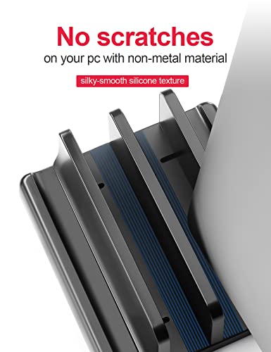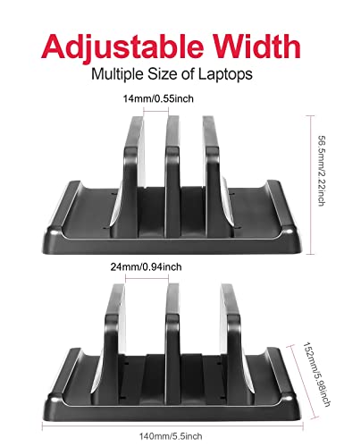 - Dual-Slot Design:Cradle up two laptops and phone iPad vertically at the same time. This vertical laptop holder is great for space-saving and building up a neat and organized space for a desk.