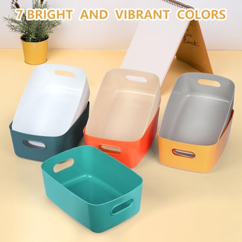 - 【Colorful Storage Box】Stackable plastic storage box set of 7, size:24.7 x 17.2 x 10 CM, different colors, orange, green, blue, yellow, gray, white and beige, exquisite appearance, modern style, it is a good choice for storage, and it is also a good decorative item.