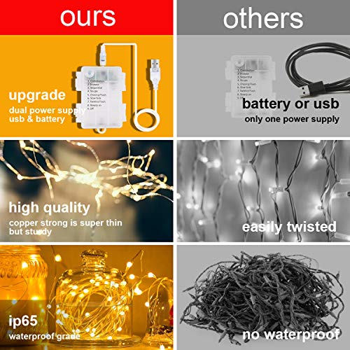 - 【USB & Battery Power】Power by USB or battery, this curtain light not only has an extra USB charging port, but also a battery box. It can be operated by a USB adapter or mobile power supply, or be placed 3 AA batteries (not included).