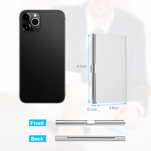 - 【Portable Design】The business card holder is made of high-quality stainless steel, with a shell size of 9.3X5.8X0.7CM. The business card holder is perfect for your pocket, briefcase, handbag, etc. Ideal for people who don't like to carry around bulky traditional wallets without adding extra burden.