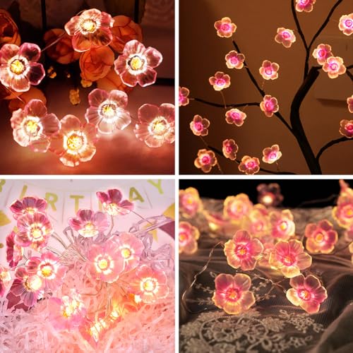 - Battery powered, safe and reliable: This beautiful cherry blossom fairy light string is powered by two AA batteries (not included). The low-voltage design ensures long-term heat-free operation and high safety. Free from electrical outlets, it offers flexible placement options, making it easy to place on a tabletop, high-rise, or outdoors, ensuring peace of mind.