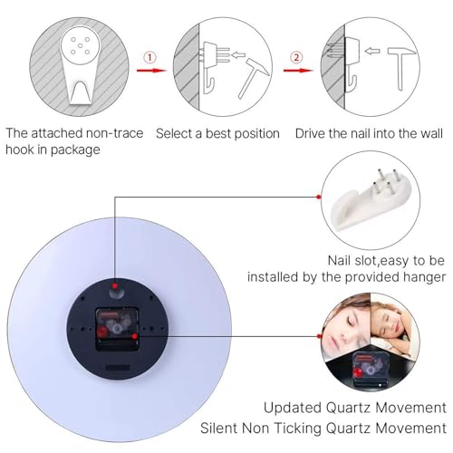 - 🌷SILENT NON-TICKING WALL CLOCK: Silent non-ticking mechanism with sweeping movement, allows you to rest in silence. Precise quartz movements guarantee accurate time.