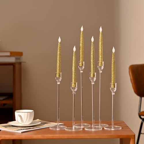 - Three Heights and Versatile Fit: Our candlestick holders come in three heights – 31cm, 26cm, and 21cm, allowing you to create stunning visual effects with varying candle heights. The base is 8cm wide, making it suitable for any standard size of 2.2cm diameter electric candle. (Electric candles are not included.)