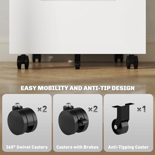 - 360° swivel wheels: Easy to move office storage drawers around easily, even when heavy. Two brakes to stop in place as needed and an auxiliary caster to prevent tipping for safety and stability