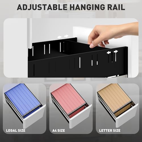 - Customised file made easy: Take control of your paperwork with a large drawer of the small filing cabinet featuring an adjustable rail to accommodate A4, legal and letter-sized files. No more hunting through piles of paper—keep everything neatly organised