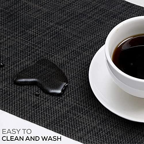 - [PREMIUM QUALITY & PERFECT SIZE] Crafted from 70% PVC and 30% polyester yarn for durability. Each placemat measures 45×30 cm in classic grey, offered as a table mats set of 6 with Coasters to add a refined touch to any dining table setting.
