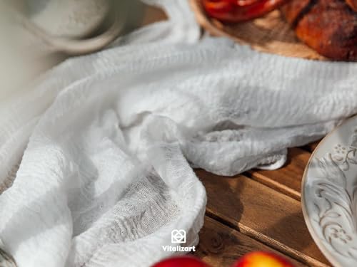 - 【Package Includes】You will get 1 pack off white cheesecloth table runner with wrinkles, approx 90 cm/35.4 inches in width and 305 cm/10ft in length. You can scrunch or fold, even cut it into required length and shape according to your needs, long and large enough for both rectangular and round tables or other shaped tables.blecloth