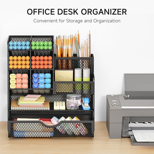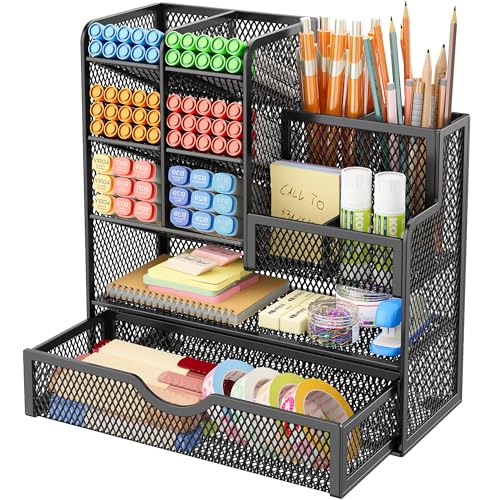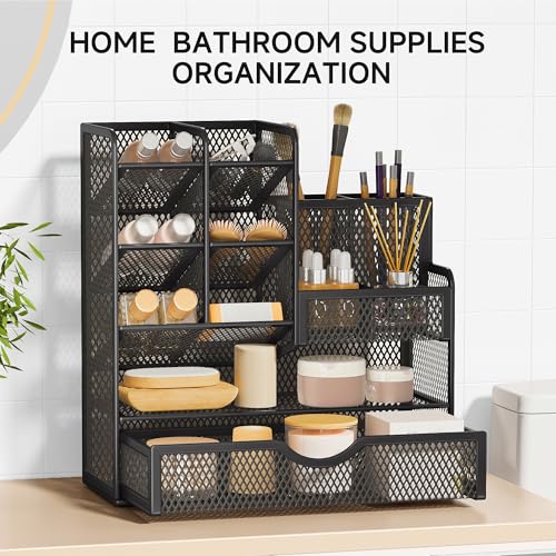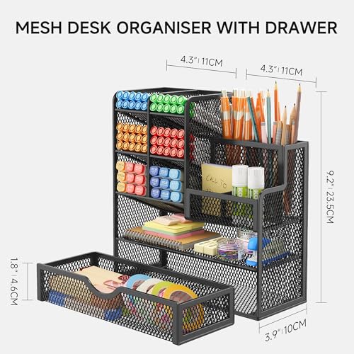 - Huge Capacity: Set of enough compartments with a rack, this metal mesh desk tidy organiser help you to arrange the desk gadgets and stationary clean and tidy. The best and safest storage option for your office stationary supplies and your make up brushes storage