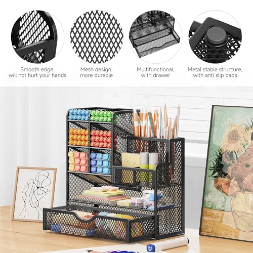 - High Quality: The Desk Storage is made of metal mesh and built with non-skid feet to make it incredibly stable, which is not easy to get rusty and thereby, keeping the pen holder brand new all the time. The extremely smooth edges will not hurt your things or yourself