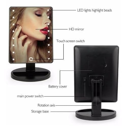 - HD QUALITY MIRROR – This makeup mirror measures 27cm x 17cm (Approx.) and utilises 16 bright white LED lightbulbs that provide the crisp & clear viewing surface. The mirror requires 4 x AA batteries for illumination (not included).