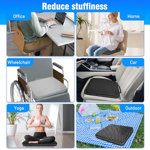 - 【Widely Use & Perfect Gift】 The gel cushion for office chair can be widely used in many occasions: office, student, home, driver, wheelchair, and various hard seats. No matter where you are, it will be your most comfortable gel cushion for sitting. Add to Cart and Buy Now, start a journey of comfortable gel seat cushion.
