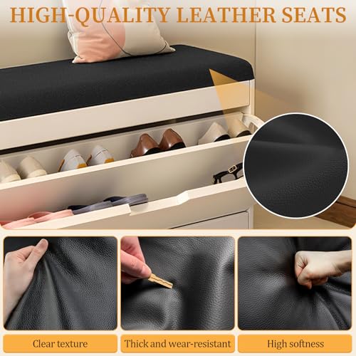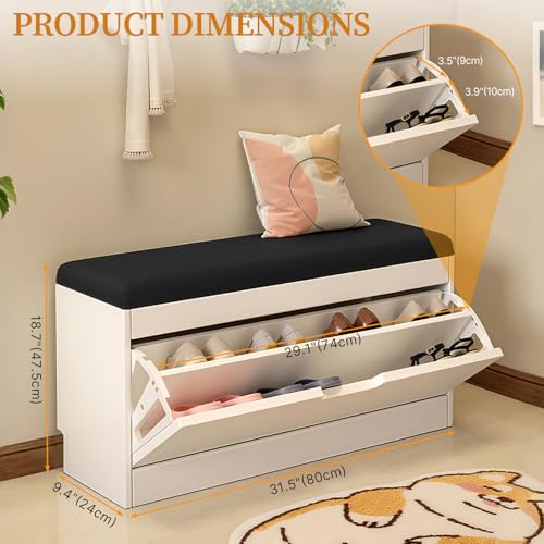 - Handy Flip-Drawer & Removable Cushion:Features a single flip-front drawer with 2 tiers for organized shoe storage (holds 4-6 pairs). Includes a detachable black seat cushion (24×80cm) with high-resilience PP cotton filling for comfortable seating. The polyester fabric cover is breathable and stain-resistant.