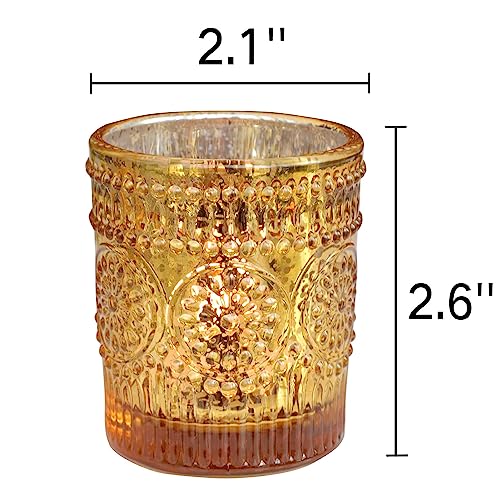 - [Gold Glass Tealight Holder]: the studded design and mercury silver coating combined, feature with vintage boho style and mysterious gold covered tealight candle holder, helps light up with golden shines and create warm vibe