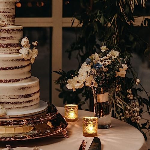 - [Votive Candle Holders Set]: 12 pcs gold tealight holders glass, measure is 5.5cm top diameter and 6.5cm height. Works with regular wax tealight candles, LED flameless tea lights, small votive candle(Candle Not included)
