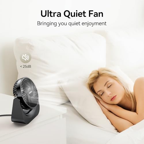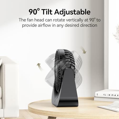 - 【Low Noise & 90° Vertical Rotation】: The mini fan is very quiet at low speed and less than 50db at high speed, it will not disturb you when you are doing things. This fan is suitable for studying, working, sleeping, reading, etc. This USB desk fan can rotate 90° vertically, providing the right wind angle to cool you down quickly. The bottom of the small fan is designed with rubber to make it more stable
