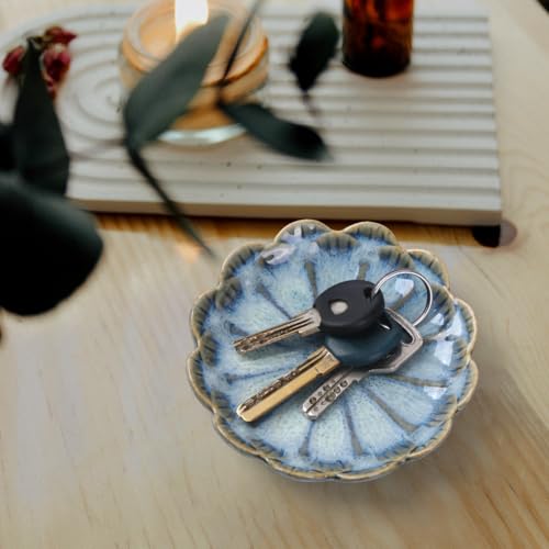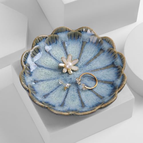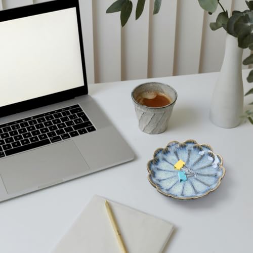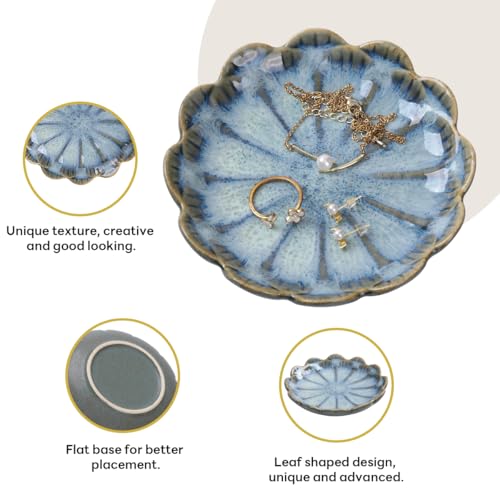 Vukehon Jewelry Dish Lotus Leaf Shape Ring Holder Ceramic Decorative Plate Trinket Tray Key Bowl(Petals-Blue)