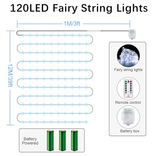 - 【120 LED Fairy Lights】Each string light is equipped with 120 LED beads evenly distributed on a 12-meter copper wire, emitting 360-degree all-angle light that spreads in all directions, creating a magical atmosphere and adding fun to your life