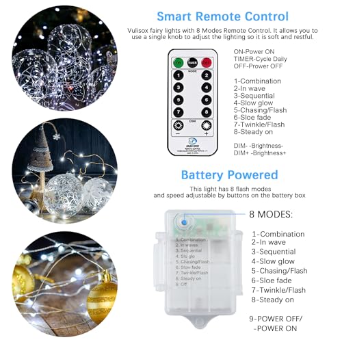 - 【8 Modes Remote Lights】With 8 lighting modes including switching, combining changes,waving, firefly flashing, fading, chasing/flashing, slow fading, flashing/flashing, and stable activation, these lights can be switched via the provided remote control. They also feature a timing function that supports 6 hours on and 18 hours off daily, eliminating the worry of forgetting to turn them off and helping to save battery life