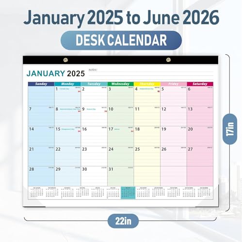 - Large Wall Calendar: 18 months of large monthly desk/wall calendar from January 2026 to June 2027. With 18 months for planning and organizing your home office, large size 55.9 x 43.2 cm for family planners with notes, pocket for daily use.
