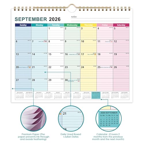 - 【Important Dates】The 2026-2027 Calendar contains important holidays, anniversaries, legal holidays and is the perfect family calendar and planning calendar, allowing you to see at a glance what you have planned for the month and not miss any important holidays and commemorative moments.
