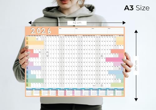 - 2026 A3 Wall Planner, specially designed for UK user, this large-format yearly calendar is perfect for planning at home, school, university, or the office.