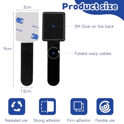 - ADJUSTABLE LOOP DESIGN:Flexible Cable Ties – The self-adhesive cable organizer includes adjustable loops to fit different wire thicknesses (3-8mm), securing power cords, USB cables, and more.