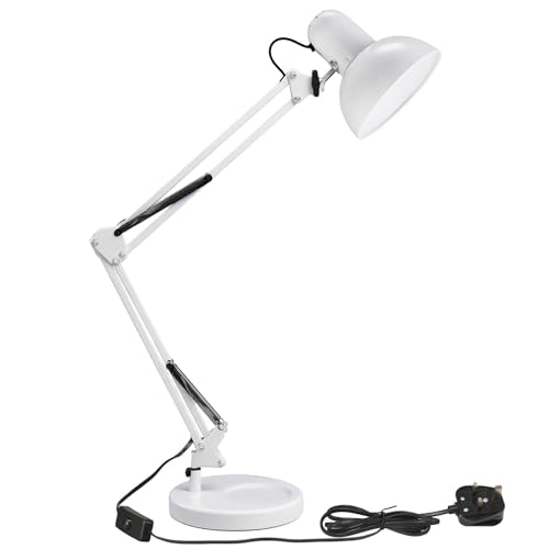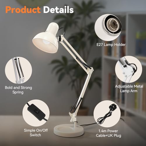 - 💡【Stable Base】A heavy-duty base keeps the study lamp on your desk or nightstand even when fully extended. It folds away when not in use, saving space. Its simple white tones and lines, along with its classic industrial style, make this office lamp a natural fit for both modern and vintage homes.