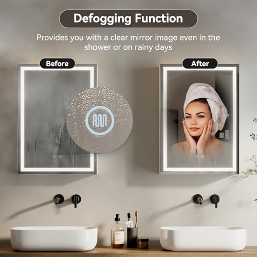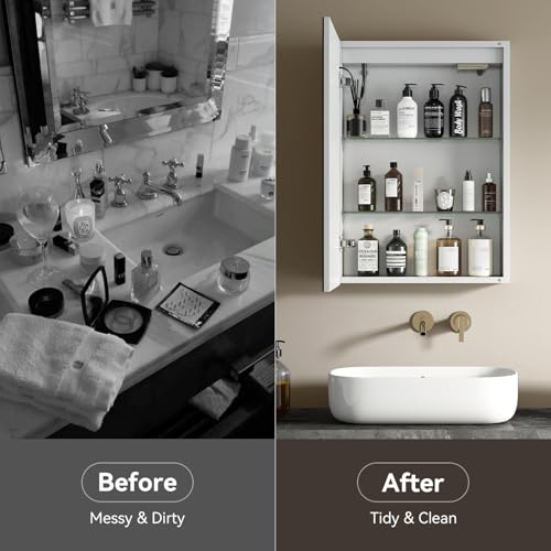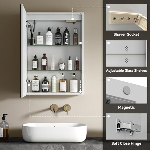 - 【Shaver Socket and Anti-fog Function】This bathroom mirror cabinet with shaver socket on the inside for charging electric shaver or toothbrush.The bathroom mirror is equipped with a demister pad that you can get a clear mirror even in the shower or wet weather.