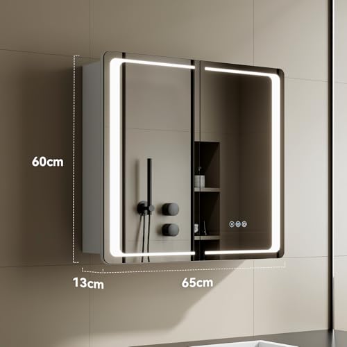 - 【Touch Control】Note:The soft hinge can be adjusted if the cabinet door does not fit tightly when you received it.This LED illuminated bathroom mirror cabinet is control by touch.Silent hinge can effectively avoid the noise when opening and closing,IP44 waterproof effectively.The Pre-wired located on the back of cabinet(without plug).If you have any questions please contact us,we have a professional team to solve your problem within 24 hours.