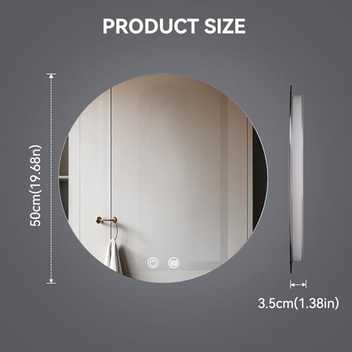 - 【3-Color Smart Light】This round bathroom mirror features 3 colour dimmable lights, you can touch the button to switch between warm white, natural light and cool white.You can choice your favourite color temperature in daily lives.【Note】:brightness not adjustable.