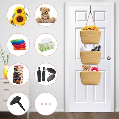 - 【Premium Material】🌷 This wall storage organizer is made of natural cotton, chemical free and odorless. Our woven hanging baskets are handcrafted and sewn to be strong and durable. Compared to other materials, this woven wall baskets will last longer to decorate your home for a long time. Tip: This product is all photographed, due to lighting problems may have a slight color difference, please refer to receive the physical shall prevail!