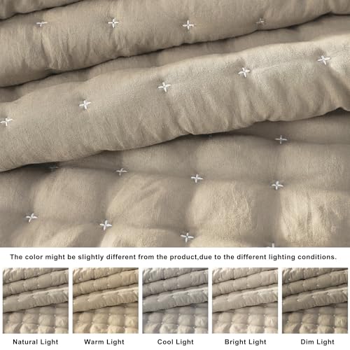- Color:Beige quilt with white cross stitch – simple, elegant and easy to match. The beige colour is a deep, warm beige with a subtle yellow tone. Please note that the colour may vary depending on the light or screen setting.
