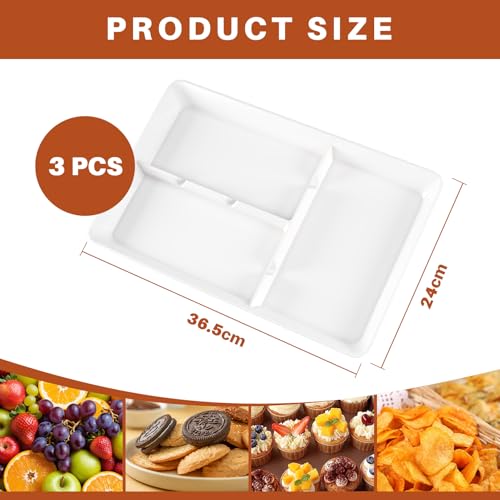 - Compartmentalised Design: The set contains 3 trays, each measuring 38.1 x 25.4 x 3.3 cm, with 3 compartments, ideal for serving a variety of appetisers, desserts, biscuits, fruits, vegetables and more.