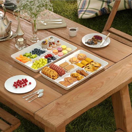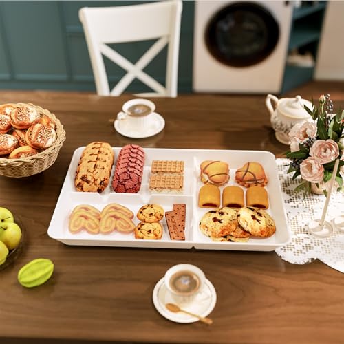 - Easy to Clean:This divided serving tray is smooth and easy to clean. You can hand wash or wipe with a damp cloth. In addition, these kitchen trays are stackable, ensuring easy storage and keeping the storage space tidy when not in use.