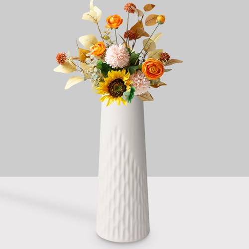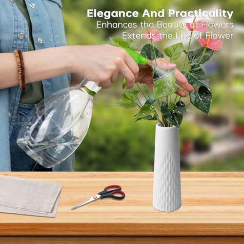 - Versatile Modern Design: The white ceramic vase features a simple yet elegant design that makes it a perfect centerpiece for any room, including the dining room, living room, bedroom, office, and more. Its neutral color ensures it complements any decor style.