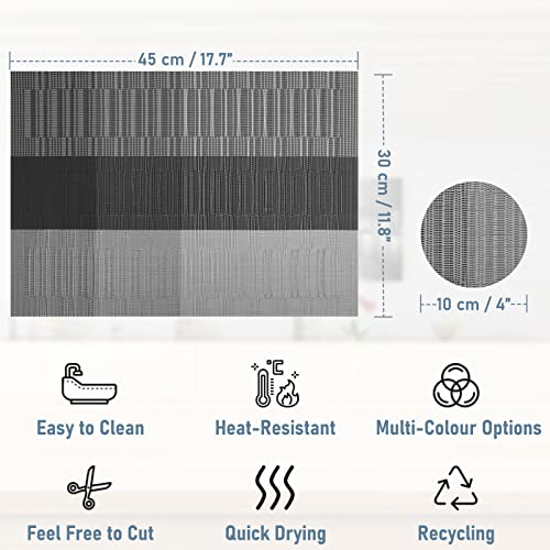 - PROTECT YOUR TABLE: It can keep your table from the damage of scratches and stains, the placemat has an effective heat resistance of approximately 80°C. Beautiful stylish placemats are perfect for your table and will add even more interest to your kitchen table
