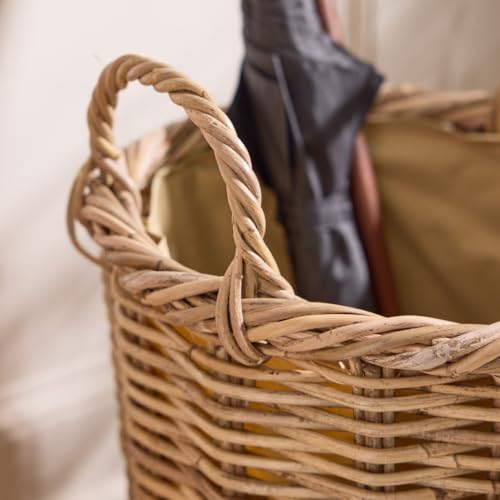 - Umbrella stand made from natural hand woven willow wicker with a mid wash finish